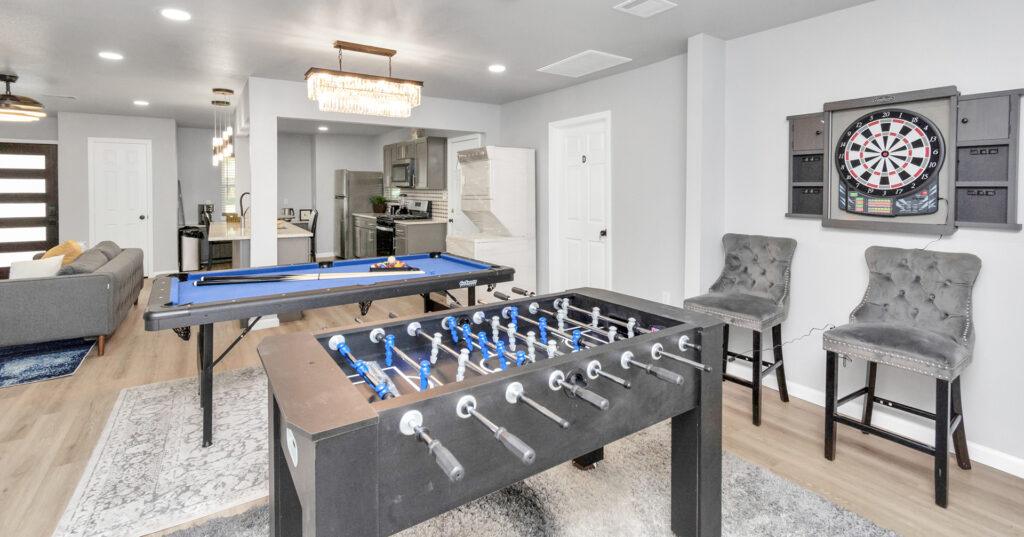 - Exciting and clean common area with games.